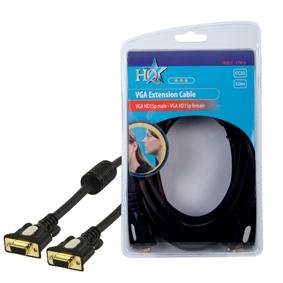 HD15 pins sub-D mâle - HD15 pins sub-D femelle avec connecteurs plaqués or et filtre ferrite. Ce câble convient pour l`extension des câbles moniteur ou pour utiliser avec des commutateurs.
